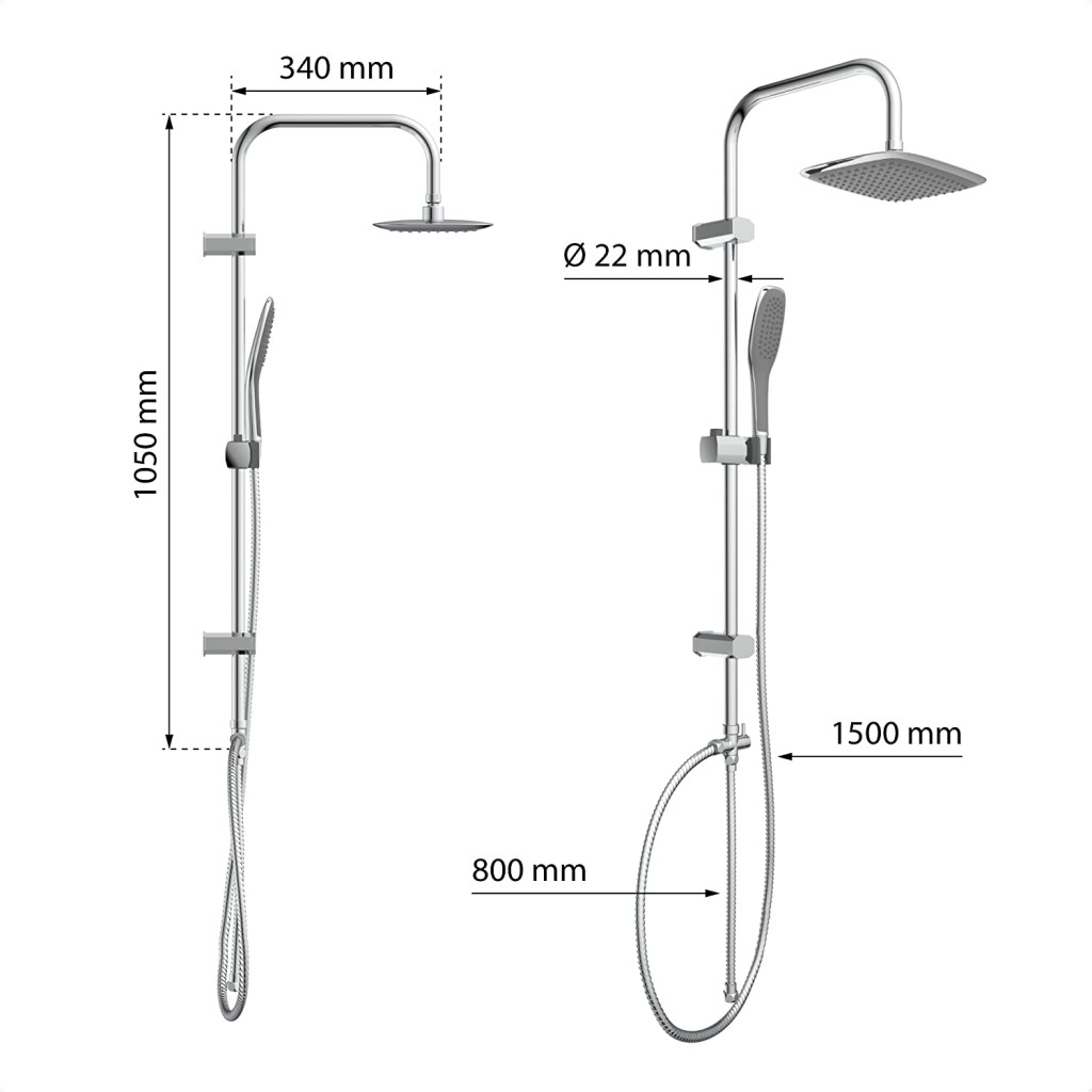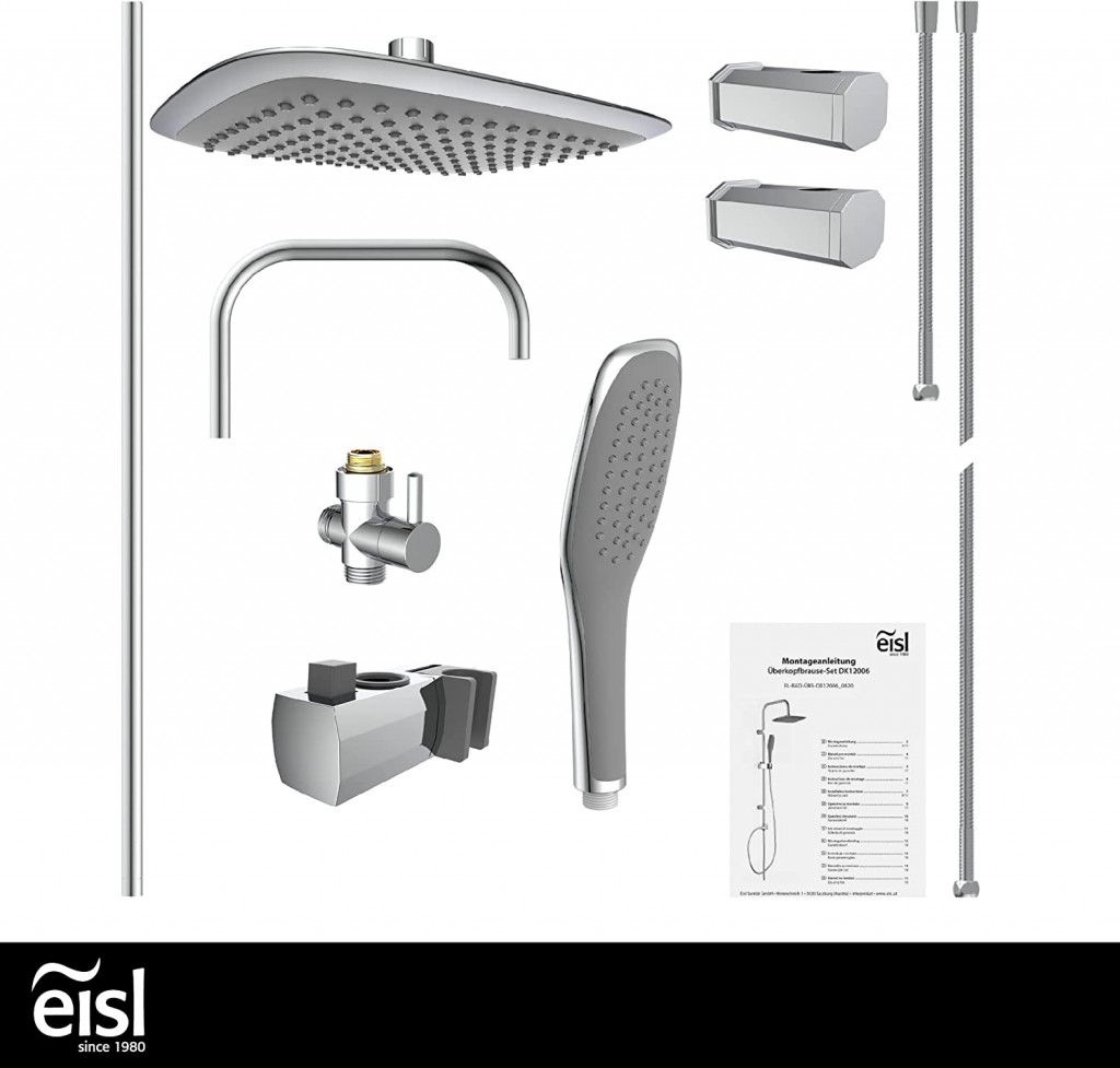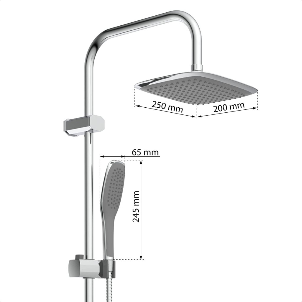 - Sprchový set obsahuje kovovú sprchovú tyč, hornú sprchu, sprchovú hadicu a ručnú sprchu (sprchová ružica)