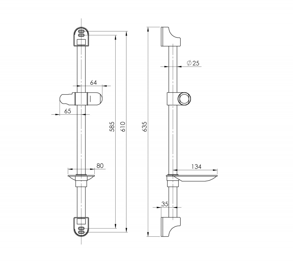 - Rozmery: dĺžka 63,5 cm, priemer Ø 25 mm