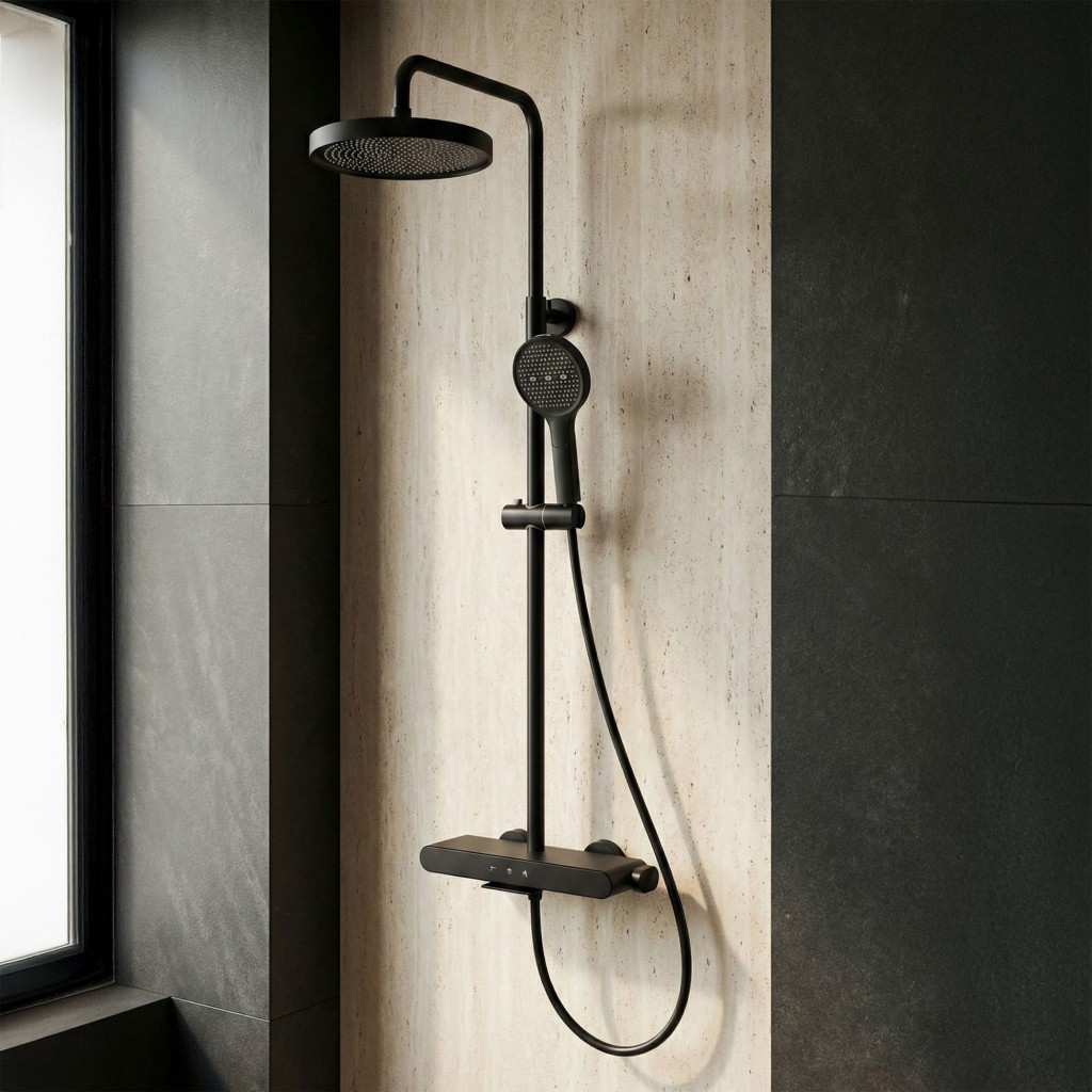 Objavte nový štandard sprchovania vďaka nástennej sprchovej súprave Rea Farel Black. Tento model je esenciou moderného designu, ktorý spája eleganciu čiernej armatúry s inovatívnou funkčnosťou. Namiesto bežných riešení ponúka Farel pohodlné tlačidlové ovládanie a unikátne prvky, ktoré uľahčujú udržanie čistoty v kúpeľni. Intuitívny panel Piano – srdcom súpravy je batéria vybavená systémom estetických tlačidiel. Tie umožňujú rýchle a pohodlné prepínanie prúdu vody medzi hlavovou sprchou, ručnou sprchou a výtokom. Ručná sprcha s funkciou Bidetta - revolučné riešenie v oblasti sprchových armatúr. Ručná sprcha má tlačidlo na zadnej strane tela a dodatočný vývod hore. Po aktivácii sa zmení na bidetovú spršku, ideálnu pre rýchle opláchnutie kabíny, umytie vaničky alebo naplnenie vysokého vedra. Diskrétny kaskádový výtok - batéria má tiež integrovaný vaňový výtok. Široký kaskádový prúd umožňuje pohodlne umyť ruky alebo naplniť misku bez použitia ručnej sprchy. Technológia Electroplating – hlboká matná čierna bola dosiahnutá galvanickým procesom. Vďaka tomu je povrch dokonale hladký, odolný a výrazne odolnejší voči mechanickému poškodeniu a vlhkosti ako tradičné práškové lakovanie. Pevná konštrukcia – telo batérie je vyrobené z odolnej mosadze, čo zaručuje stabilitu a spoľahlivosť po mnoho rokov. Hlavová aj ručná sprcha z ABS zaisťujú ľahkosť a ľahké čistenie trysiek od vodného kameňa. Komfort používania – súprava je vybavená výškovo nastaviteľnou tyčou, ktorá umožňuje ideálne prispôsobiť hlavovú sprchu výške každého člena domácnosti aj rozmerom sprchovacieho kúta. Súprava Rea Farel Black je ideálnou voľbou do moderných kúpeľní v štýle. Jej premyslená konštrukcia zjednodušuje každodenné rituály.