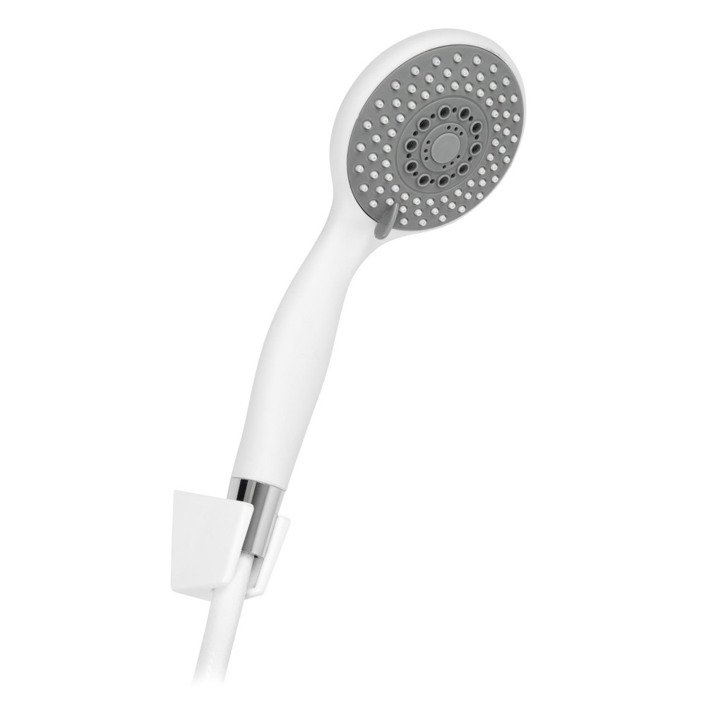 Súprava ďalej obsahuje nástenný držiak a flexibilnú sprchovú hadicu s dĺžkou 1,5 m. Jednoduché prevedenie v bielej farbe skvele zapadne do klasických aj moderných kúpeľní. Ideálna voľba pre tých, ktorí hľadajú funkčnú a ľahko udržiavateľnú sprchovú sadu.