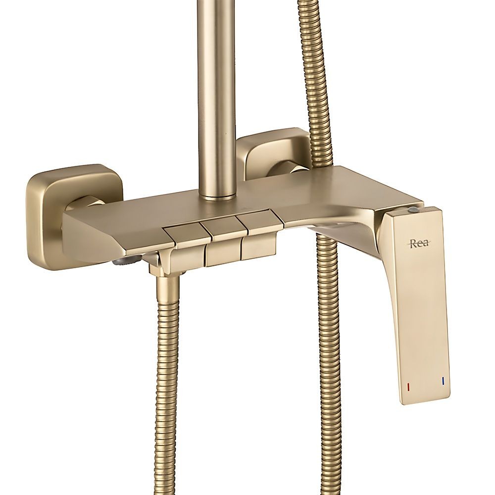 Oceňte eleganciu a modernosť, ktoré ponúka nástenný sprchový set Rea Joe v prevedení Kartáčované Zlato. Ide o ideálne spojenie minimalistického dizajnu a maximálnej funkčnosti, ktoré skvele doplnia vašu kúpeľňu a zachová bezchybný vzhľad. Set je vyrobený z vysoko kvalitných materiálov – mosadze a ABS – čo zaručuje dlhú životnosť, komfort a bezpečné používanie po mnoho rokov. – zaisťuje relaxačný a rovnomerný prúd vody. Nastaviteľná výška hlavovej sprchy – možnosť prispôsobenia ramena pre maximálny komfort. Mosadz a ABS – garantujú pevné telo a odolnosť proti mechanickému poškodeniu. System Anti-Calc – trysky hlavovej aj ručnej sprchy s ochranou proti vodnému kameňu. rýchla a jednoduchá inštalácia (rozstup pripojenia 150 mm). Nástenný sprchový set Rea Joe Kartáčované Zlato je skvelou voľbou pre každého, kto ocenia minimalizmus, kvalitu a nadčasový dizajn. Elegantná kartáčovaná úprava bude štýlovou ozdobou vašej kúpeľne.