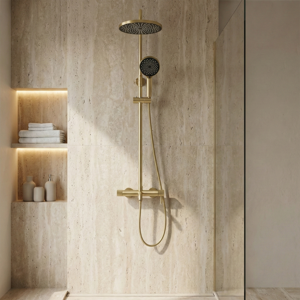 Sprchový set Rea Lungo Stripe v prevedení Kartáčované zlato je spojením moderného designu s vysokou funkčnosťou. Charakteristickým prvkom série sú jemné drážkované detaily, ktoré dodávajú armatúre jedinečný, šperkársky štýl. Vďaka použitiu pokročilej technológie PVD povlakovania sa set vyznačuje mimoriadnou trvanlivosťou a odolnosťou proti poškodeniu. Povrch Kartáčované zlato – elegantný matný povrch, ktorý účinne maskuje škvrny od vody a odtlačky prstov, čo uľahčuje každodenné čistenie. Štruktúra Stripe – unikátne drážkovanie na prvkoch setu zdôrazňuje moderný charakter kúpeľne a zlepšuje úchop. Technológia PVD – zaručuje viacročnú stálosť farieb a vysokú odolnosť proti poškriabaniu a korózii. Kompletný sprchový systém - set obsahuje veľkú dažďovú sprchu, ergonomickú ručnú sprchu a nástennú batériu, čo zaisťuje plný komfort používania. Vysoko kvalitné materiály - mosadzné telo zaisťuje bezporuchovosť po roky. Set Rea Lungo Stripe je ideálnym riešením pre ľudí hľadajúcich odolnú a efektnú armatúru, ktorá sa stane výrazným dekoratívnym prvkom v každej modernej kúpeľni.