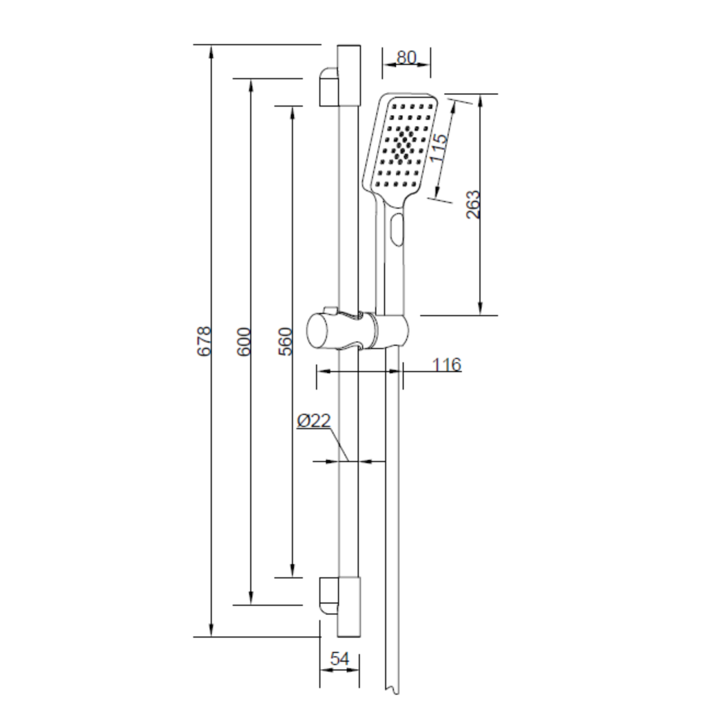 - posuvný držiak ručnej sprchy nastaviteľný pomocou tlačidla pre pohodlné používanie
