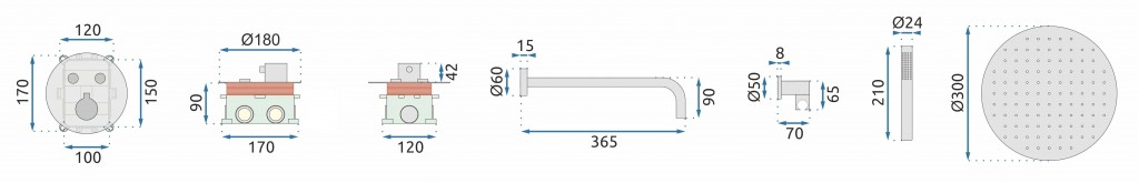 | Balenie | skrytá baterie, dešťová sprcha, rameno k dešťové sprše, 1500 mm hadice, sluchátko, držák sluchátka, mřížky, box |