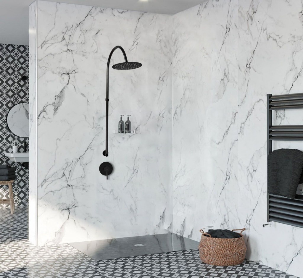 | Dažďová sprchová hlavica: | oceľová, čierna, priemer 250 mm |