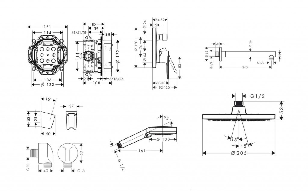 - veľkosť sprchovej hlavice: 205 mm