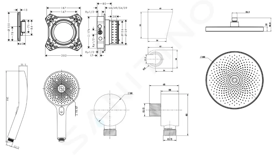 - dodávané s tlačidlami: Silný dážď/Slabý dážď/Ručná sprcha/Vodopád/Vaňa