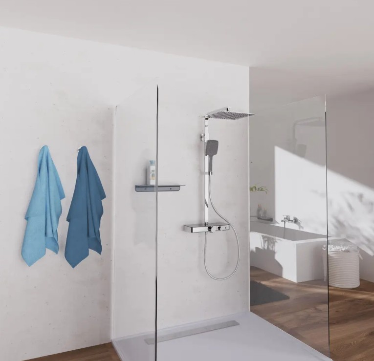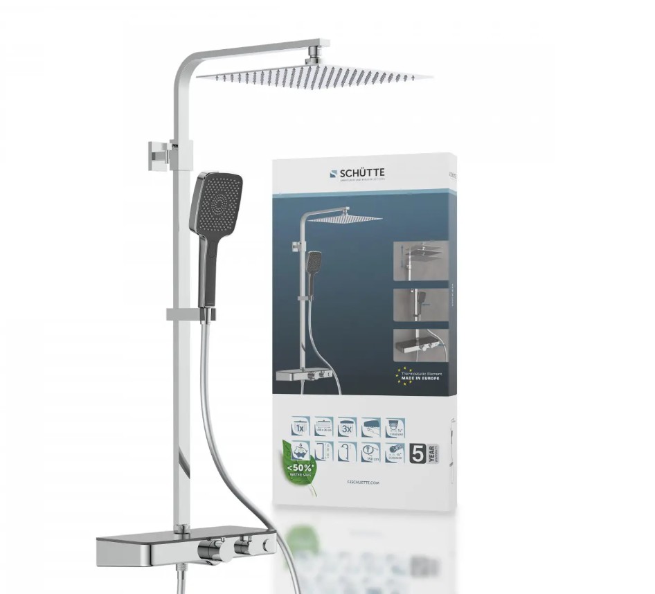 Vďaka tryskám s ochranou proti vodnému kameňu je údržba jednoduchá a sprcha si zachováva dlhú životnosť. Sklenená odkladacia plocha poskytuje praktický priestor pre sprchové doplnky, a je tak ideálna aj do menších sprchovacích kútov.