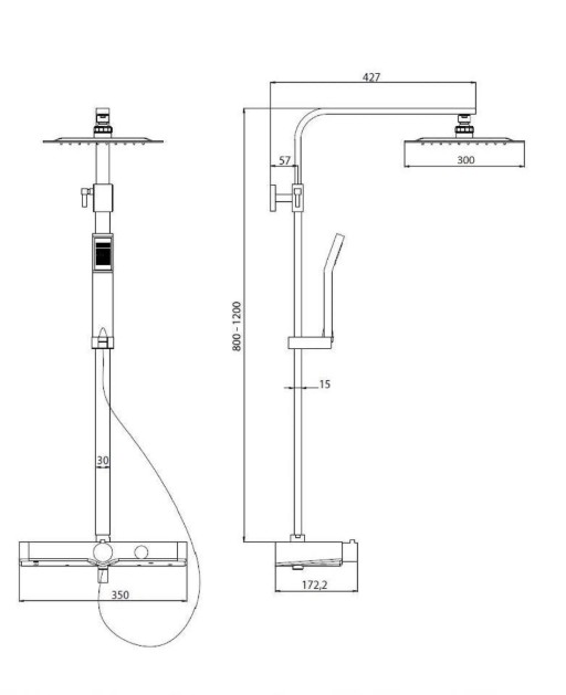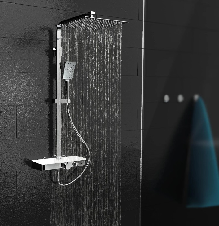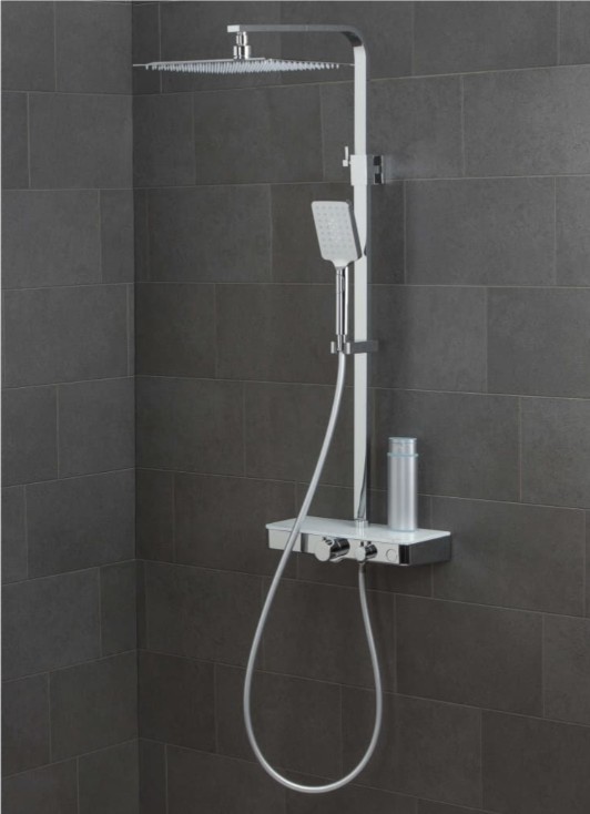 Sprcha je vybavená tryskami s ochranou proti vodnému kameňu pre ľahkú údržbu a dlhú životnosť. Sklenená odkladacia plocha ponúka praktický priestor na sprchové doplnky – ideálny aj do menších sprchovacích kútov.
