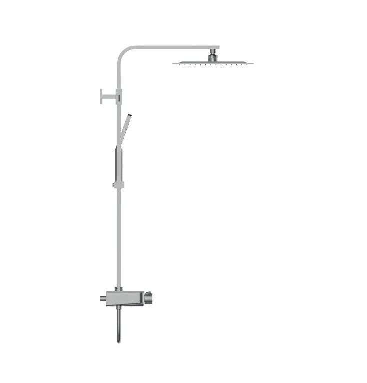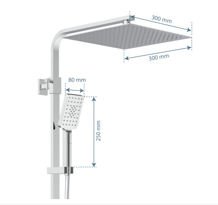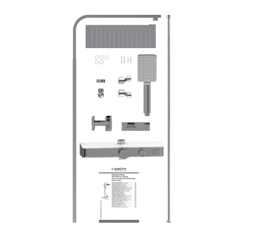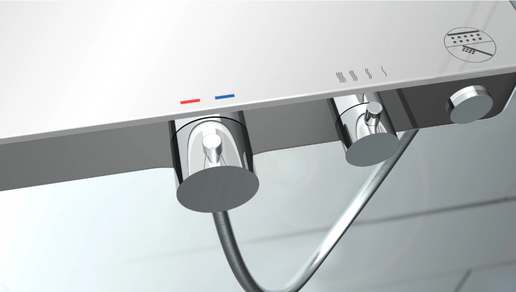 Ultra plochá nerezová horná sprcha s rozmermi cca 30 × 30 cm poskytuje príjemný wellness zážitok a spolu s 3-cestnou ručnou sprchou umožňuje prepínanie medzi rôznymi prúdmi – od jemného dažďa až po intenzívny masážny režim. Prepínanie medzi hornou a ručnou sprchou zaisťuje praktický tlačidlový prepínač .