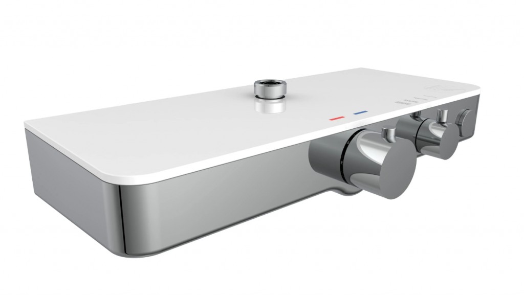 Luxusný sprchový set OCEAN v kombinácii chrómu a bielej farby prináša moderný vzhľad a maximálne pohodlie do každej kúpeľne. Súčasťou je termostatická batéria s vymeniteľným termostatickým prvkom a keramickou kartušou s ventilom ½" (Ø cca 1,9 cm) , ktorá zaisťuje plynulú reguláciu teploty aj prietoku vody.