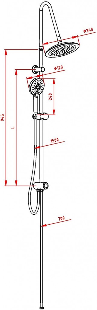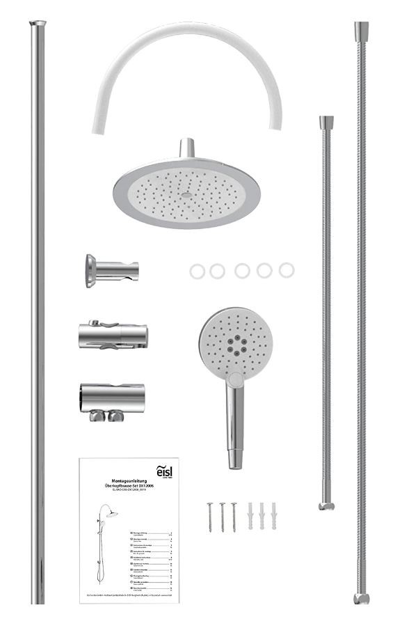 - Sprchový set obsahuje kovovú sprchovú tyč, hornú sprchu, sprchovú hadicu a ručnú sprchu (sprchová ružica)