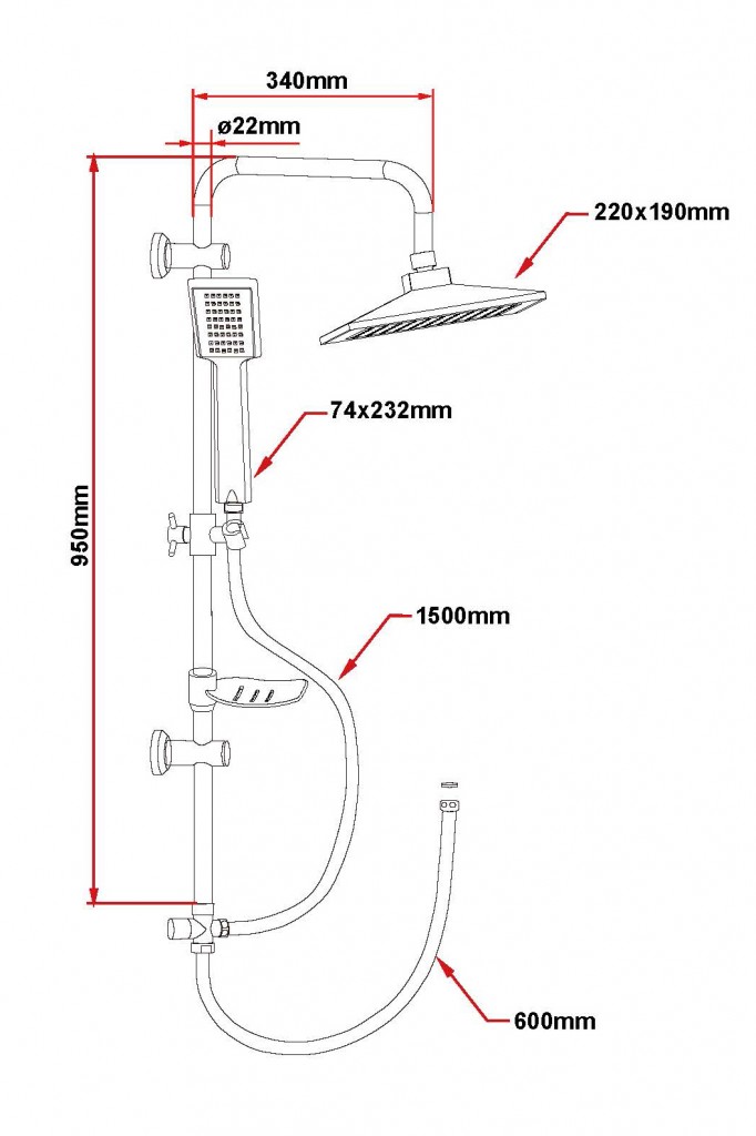 - Sprchový set obsahuje kovovú sprchovú tyč, hornú sprchu, sprchovú hadicu a ručnú sprchu (sprchová ružica)