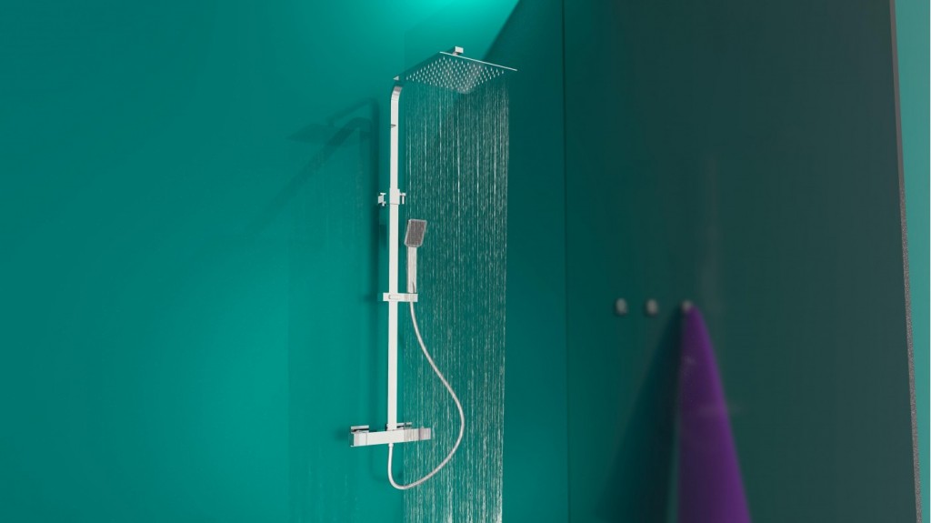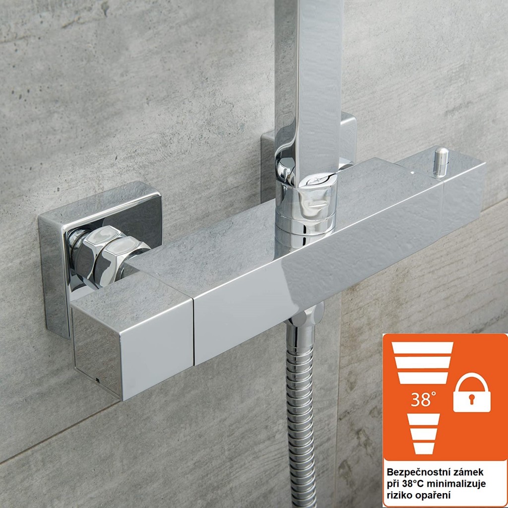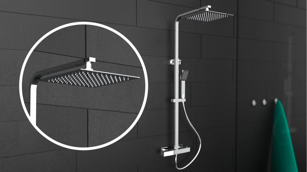 - Kvalitný sprchový stĺp z nerezovej ocele v elegantnom hranatom dizajne