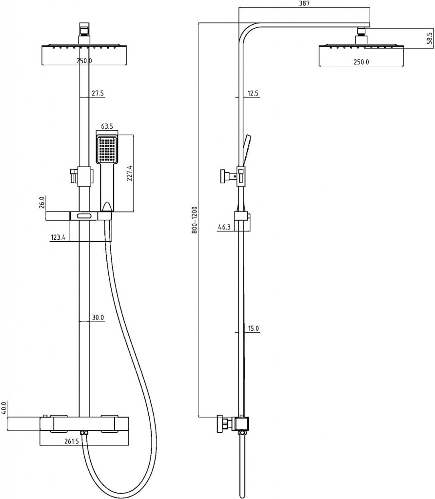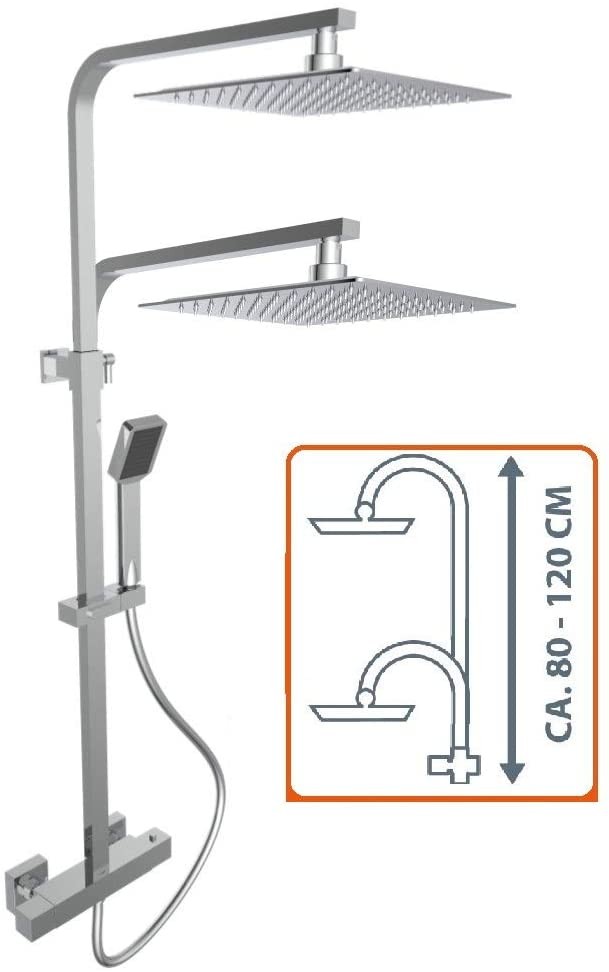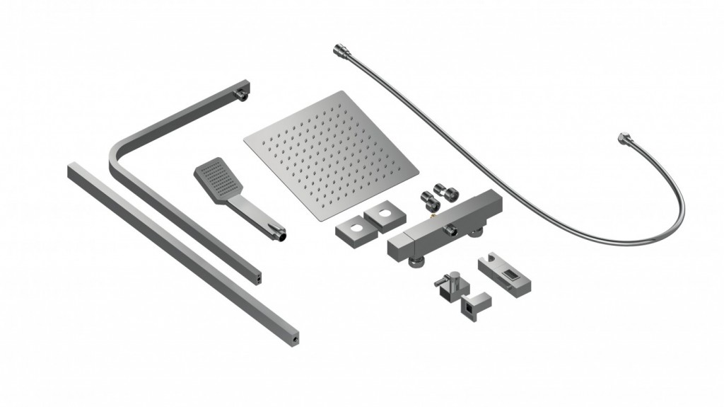 - Sprchový set obsahuje kovovú sprchovú tyč, hornú sprchu, sprchovú hadicu a ručnú sprchu (sprchová ružica) a termostatickú batériu