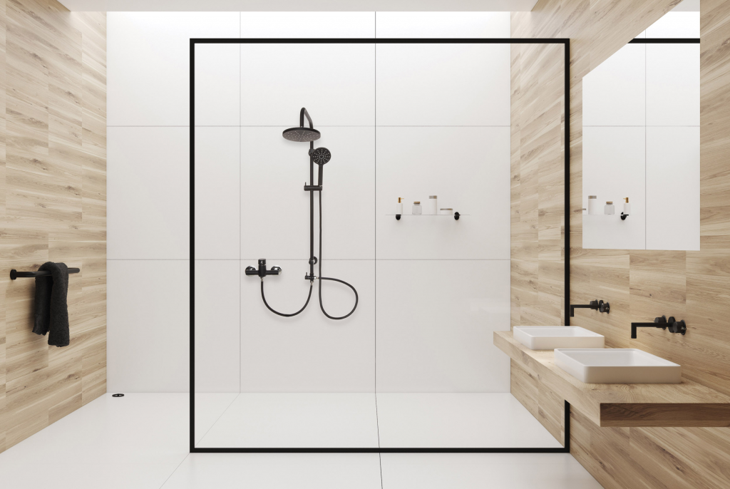 Čierny sprchový stĺp bez batérie je perfektnou voľbou pre ľudí, ktorí ocenia sofistikovaný a estetický interiér.