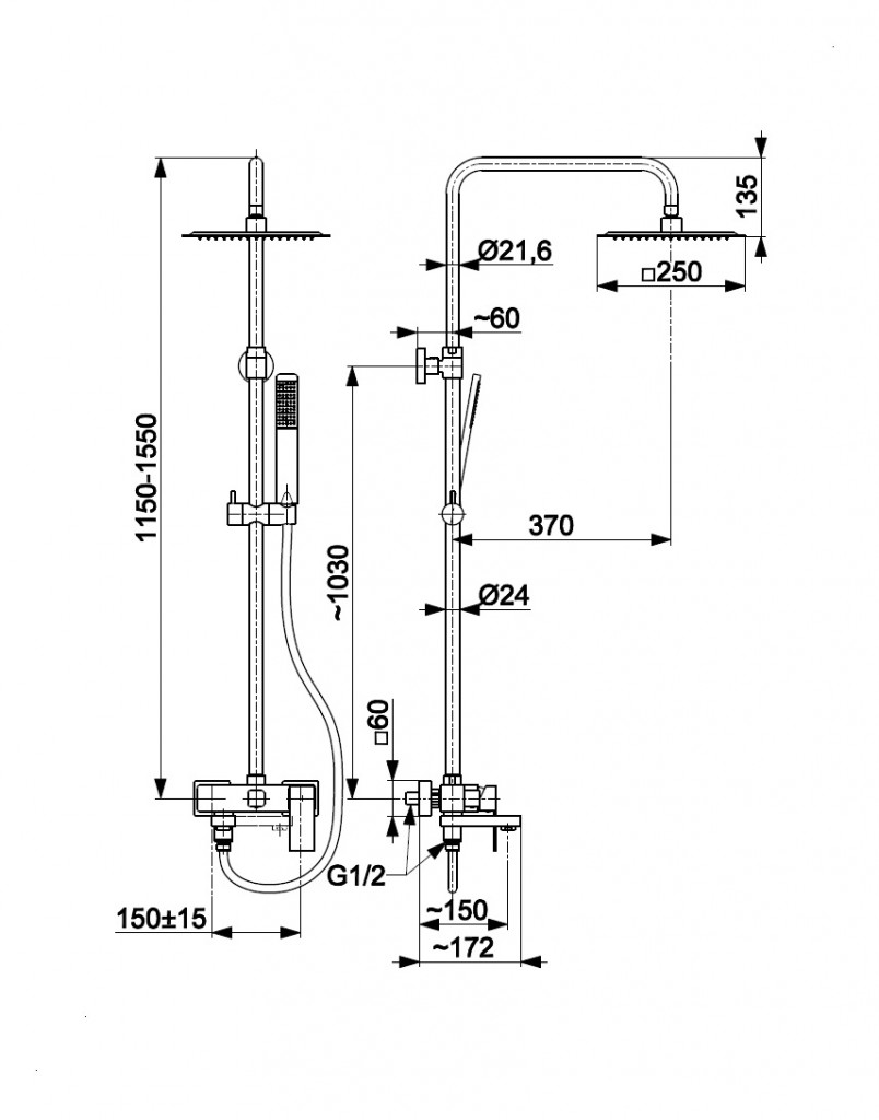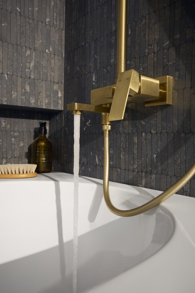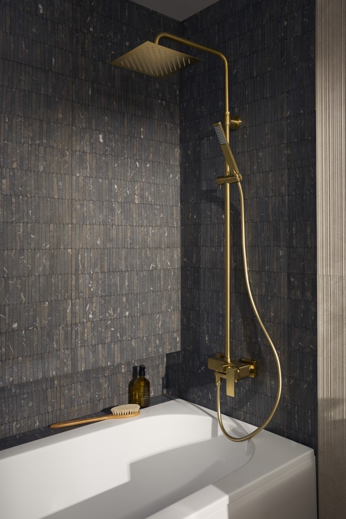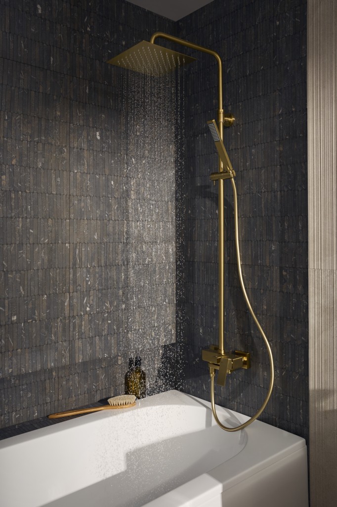 KFA - Sprchový stĺp Logon s batériou sprchovou a vaňovým výtokom, PVD brúsené svetlé zlato (5136-925-39)