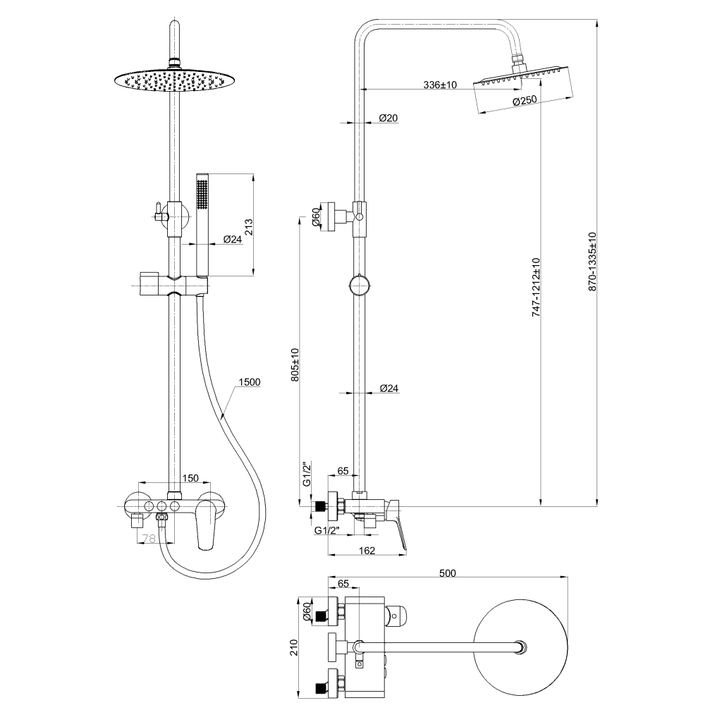 Súčasťou setu je ručná sprcha s praktickou posuvnou rukoväťou pre ľahké nastavenie výšky. Batéria ponúka tri funkcie – hornú dažďovú sprchu, ručnú sprchu a pohyblivý výtok – ktoré je možné pohodlne prepínať podľa potreby. Oceľová hadica s dĺžkou 150 cm zaisťuje pohodlné a flexibilné používanie.