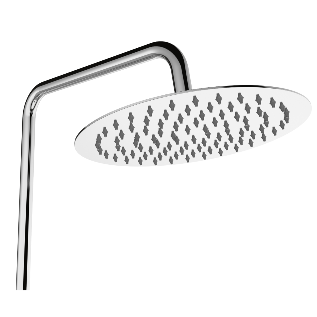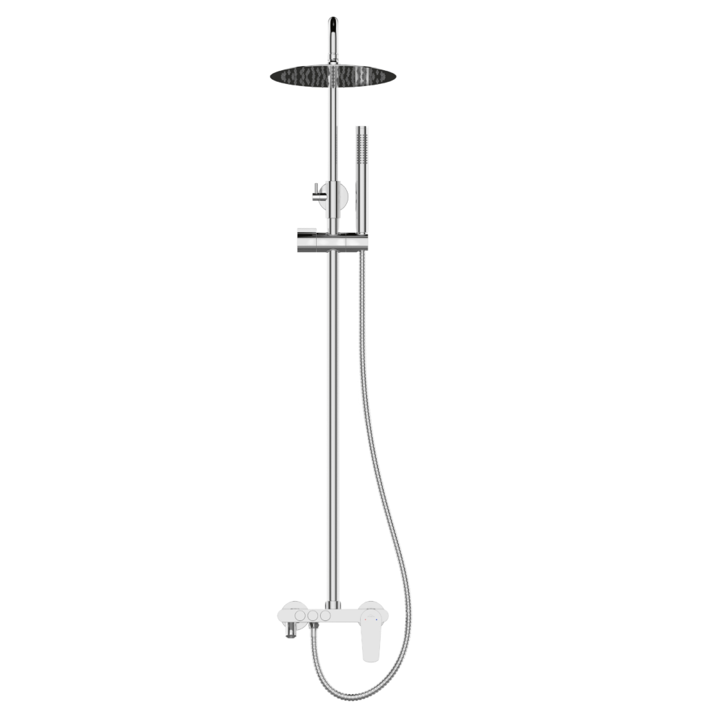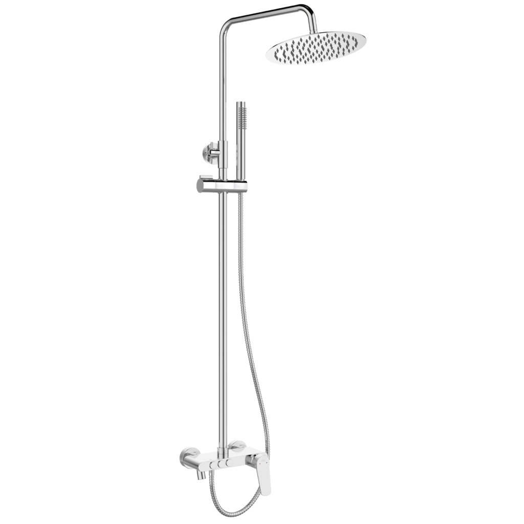 Sprchová batéria ALONIA Rain v lesklej chrómovej farbe je elegantnou a funkčnou voľbou pre moderné kúpeľne. Výškovo nastaviteľný sprchový stĺp (87–135 cm) sa ľahko prispôsobí rôznym používateľom, zatiaľ čo veľká horná sprcha s priemerom 25 cm ponúka príjemný dažďový prúd pre maximálnu relaxáciu.