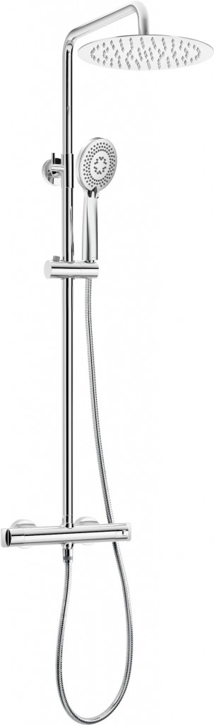 Pohodlná dažďová sprcha vám umožní voľný pohyb v sprche, pretože sprchovú hlavicu nemusíte držať v ruke. Klasické tvary a moderná povrchová úprava pôsobia príjemne v priemyselných a škandinávskych kúpeľniach, ale aj v tradičnejších interiéroch. Odolný a odolný povlak je odolný proti odštiepeniu a tepelnému šoku. Dažďová sprcha sa tiež ľahko udržuje v čistote vďaka systému Anti-Calc. Usadeniny vodného kameňa z vody zo silikónových trysiek rozdrvíte jedným pohybom ruky. Súprava obsahuje aj sprchovú batériu. Zakaždým si môžete vybrať zdroj prietoku vody a prispôsobiť ho aktuálnym potrebám. Batéria je elegantne dokončená av súlade so zvyškom kolekcie a samotnou sprchovou hlavicou. Vďaka termostatickej batérii si ľahko nastavíte teplotu vody. Ochráni vás pred náhlymi zmenami teplôt, čo je obzvlášť dôležité, keď sa kúpu deti alebo starší ľudia. Tiež nemusíte čakať na optimálnu teplotu a plytvať týmto cenným zdrojom.