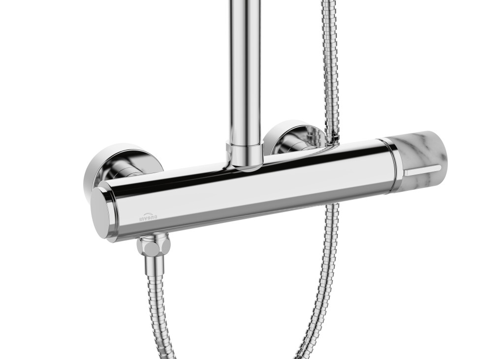Chrómovaná dažďová sprcha integrovaná so sprchovou batériou s rukoväťou zakončenou efektným mramorom určite rozžiari a dodá eleganciu každému sprchovému kútu. Biely mramor v kombinácii s chrómom je riešenie, ktoré je módne aj nadčasové. 3 druhy prúdu dostupné v sprchovej hlavici spríjemnia každé ošetrenie. Jemné kvapky z dažďovej sprchy upokoja vaše zmysly ako teplý letný dážď. Slúchadlo a dažďová sprcha sú vybavené sprchovými bodmi so systémom proti usadzovaniu vodného kameňa, čo výrazne uľahčuje ich udržiavanie v čistote. Tenká dažďová sprcha obmedzuje kvapkanie vody po jej vypnutí, čo z nej robí voľbu pre ľudí, ktorí oceňujú ekologické riešenia. Nastaviteľná výška stĺpa umožňuje prispôsobiť ho individuálnym potrebám a možnostiam miestnosti a integrácie s kohútikom tiež uľahčuje udržiavanie celého stĺpa v čistote.