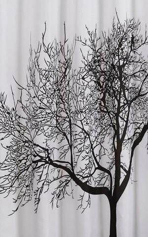 AQUALINE - Sprchový záves 180x200cm, polyester, čierna/biela, strom (ZP008)