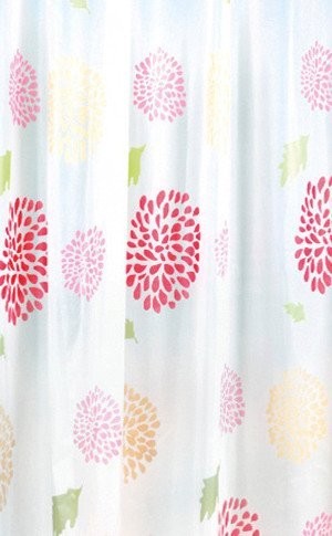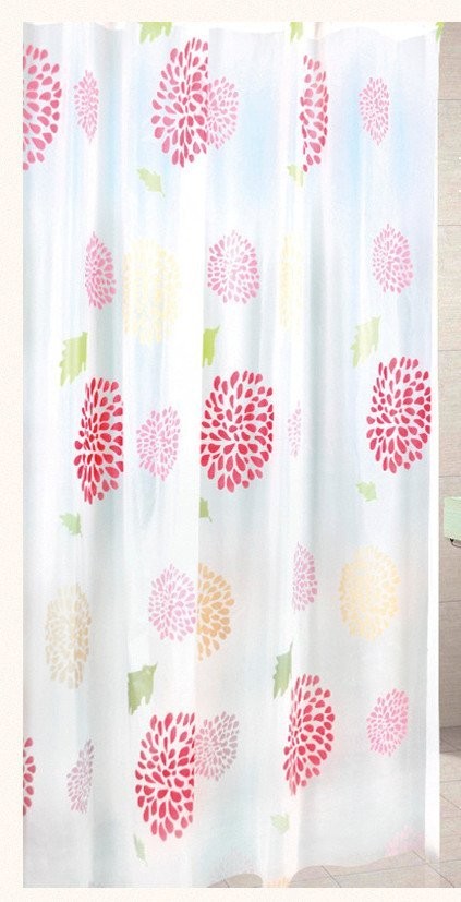AQUALINE - Sprchový záves 180x200cm, vinyl, kvetovaný, červená (ZV015)