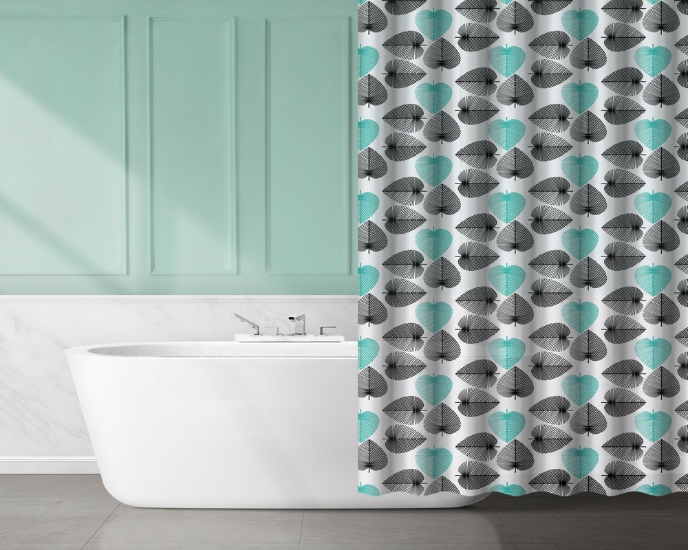 Vodeodolný, priesvitný sprchový záves s motívom čiernej a morských listov. Je vyrobená z materiálu EVA, teda kvalitnej fólie, ktorá sa vyznačuje vysokou kvalitou, nepremokavosťou, príjemným na dotyk a ľahko sa čistí. Súprava obsahuje 12 bielych závesných krúžkov. Fóliový sprchový záves je vhodný na jemné ručné čistenie pri 30 stupňoch. Nežehliť, nečistiť chemicky, nebieliť, nesušiť v sušičke.