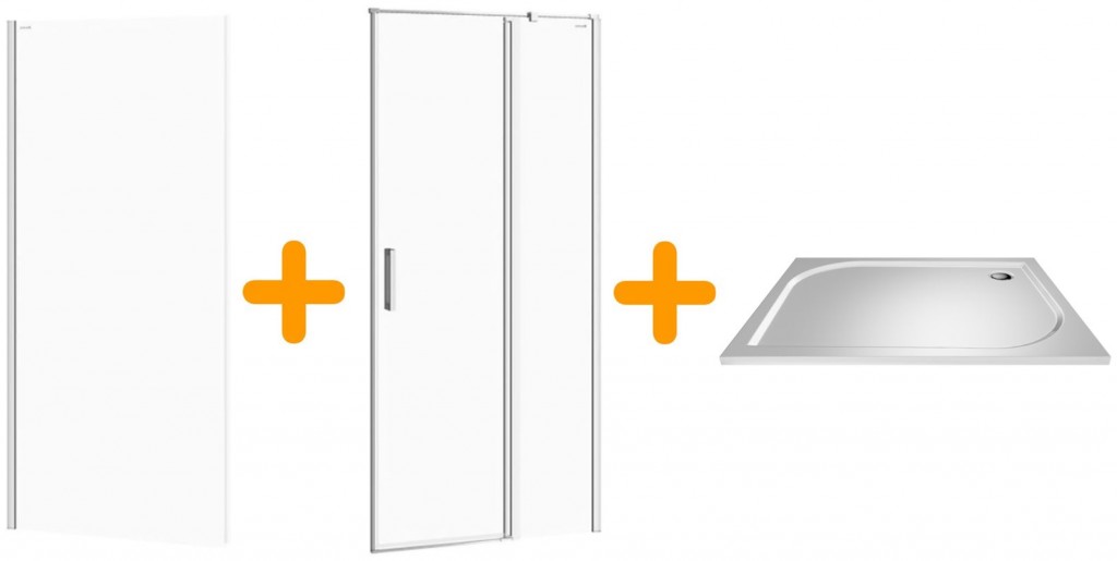 SPRCHOVÝ KÚT 90x80, DVERE PRAVÉ TRANSPARENT SKLO + vanička (S162-006-SET3)
