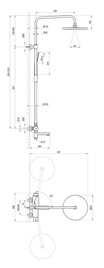 - nastaviteľná výška hlavovej sprchy: 97 – 127 cm