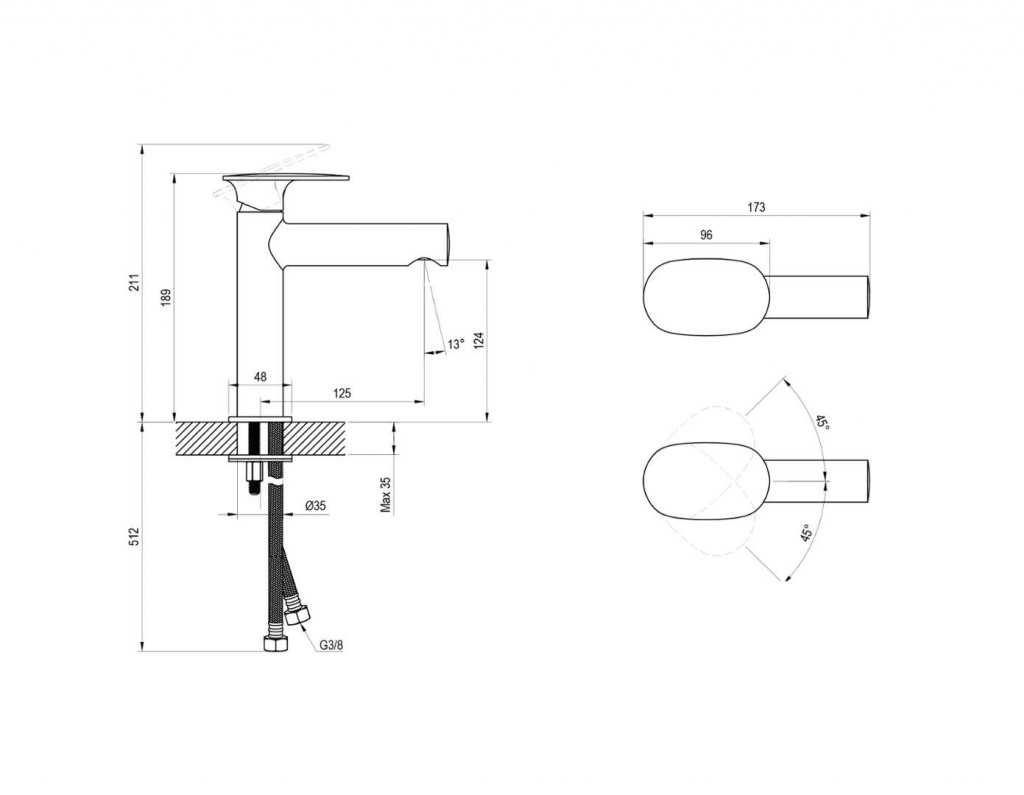 - pripojovacie hadičky: flexibilné 450 mm, priemer DN6, G3/8