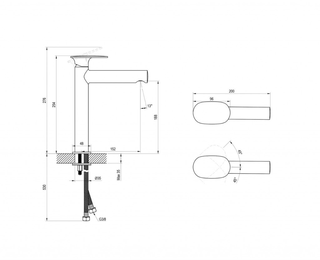 - pripojovacie hadičky: flexibilné 450 mm, priemer DN6, G3/8