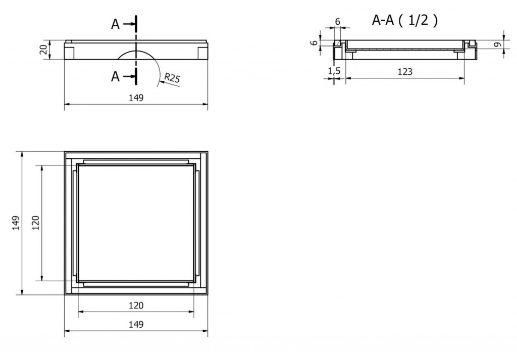 Rošt Square Tile/Plano pre podlahový vpust, obojstranné prevedenie