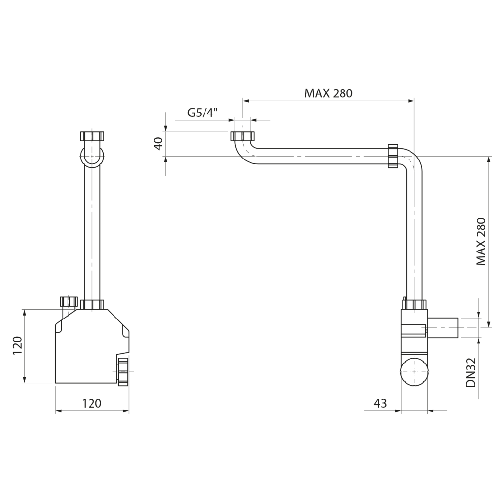 Ide o systém, kde rúrka pod umývadlom odvedie vodu k stene a až tam ju odvádza zvisle dole. Toto riešenie je vhodné napríklad do kúpeľňového nábytku, kedy sifón nebráni využitiu police/zásuvky, pre umývadlá s policou alebo k umývadlám pre telesne handicapovaných.