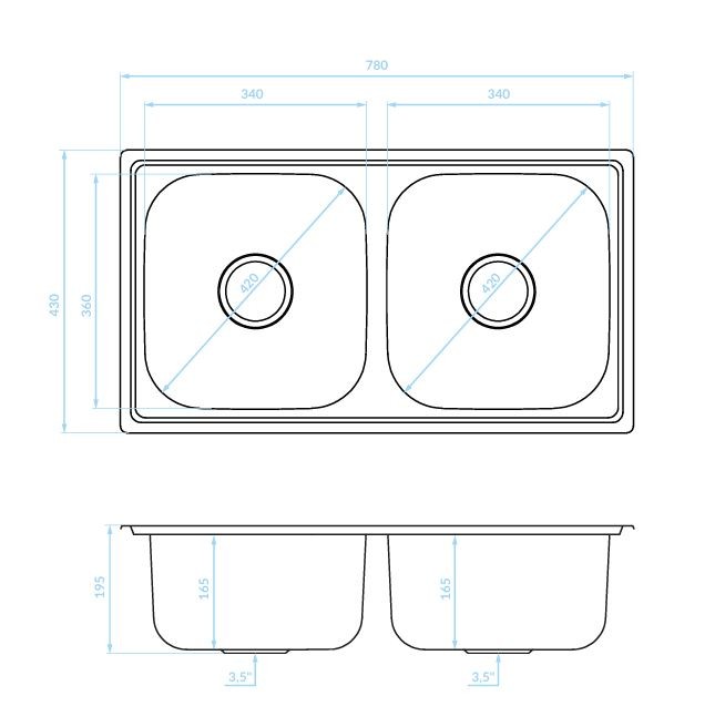 Drez Standard je praktickým a elegantným riešením pre malé a stredne veľké kuchyne. Vďaka svojim dvom hlbokým vaničkám (každá 17 cm) ponúka pohodlný priestor na umývanie veľkého riadu, oplachovanie potravín alebo rozmrazovanie. Druhú vaničku je možné navyše využiť ako odkvapkávač. Celkový rozmer 43 × 78 cm je ideálny na inštaláciu do skriniek od šírky 80 cm.