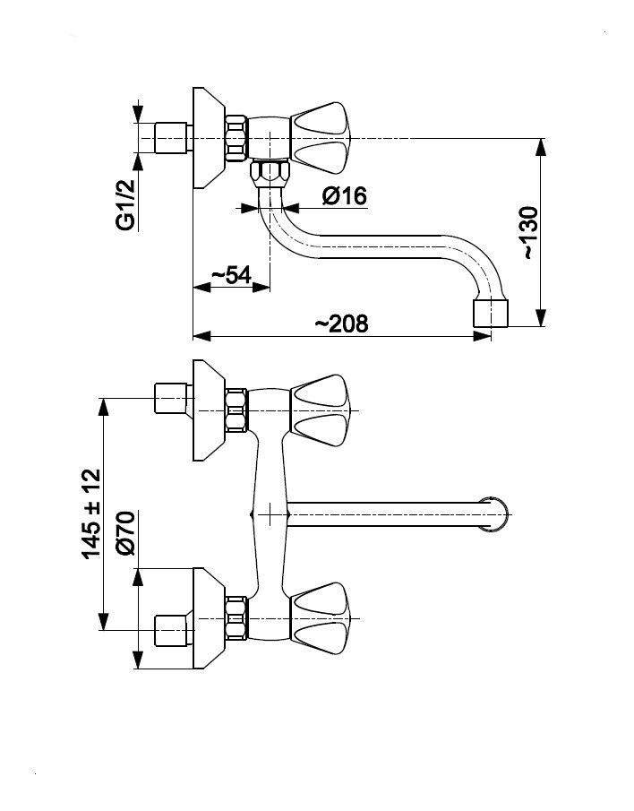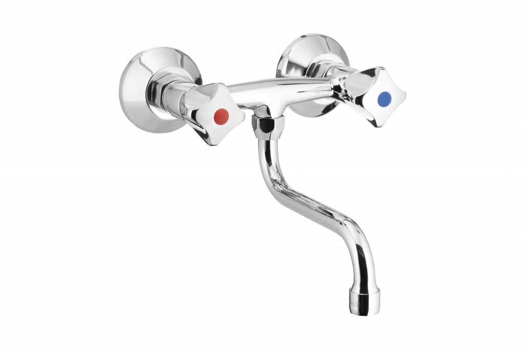 Nástenná drezová batéria STANDARD od výrobcu KFA ARMATUR A s rozstupom 150 mm. Výhodou je otočné ramienko s dĺžkou 160 mm a perlátorom.