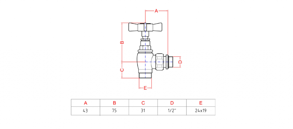 Spätný ventil je skrytý pod ozdobnou krytkou. Uzatvára sa pomocou hexagonálneho kľúča. Neslúži na reguláciu teploty, iba k uzavretiu potrubia, napr. v prípade demontáže vykurovacieho telesa, bez nutnosti vypustenia vykurovacieho média.