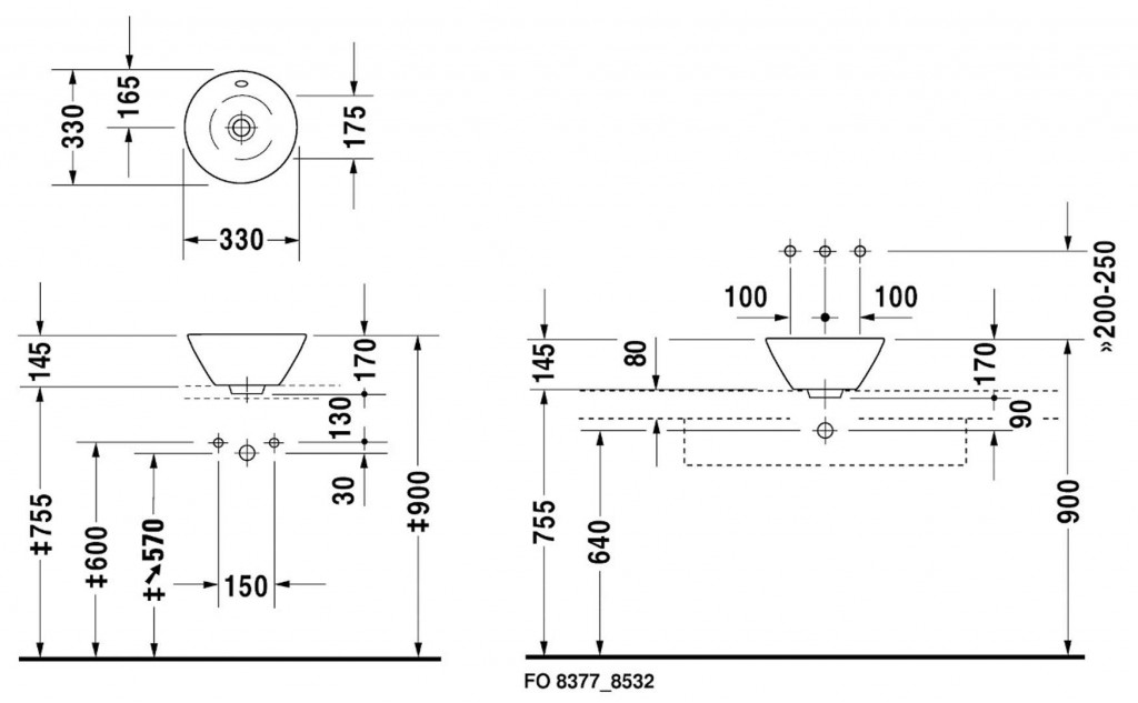 - montáž umývadlové misy 040833 s priemerom 330 mm je možná za použitia špeciálneho lepidla