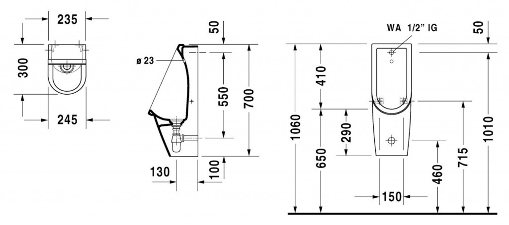 - balenie obsahuje trysku, sadu pre zadné prívod vody, odpad s krytkou Ø 72 mm, sifón Ø 32 mm a sadu pre upevnenie