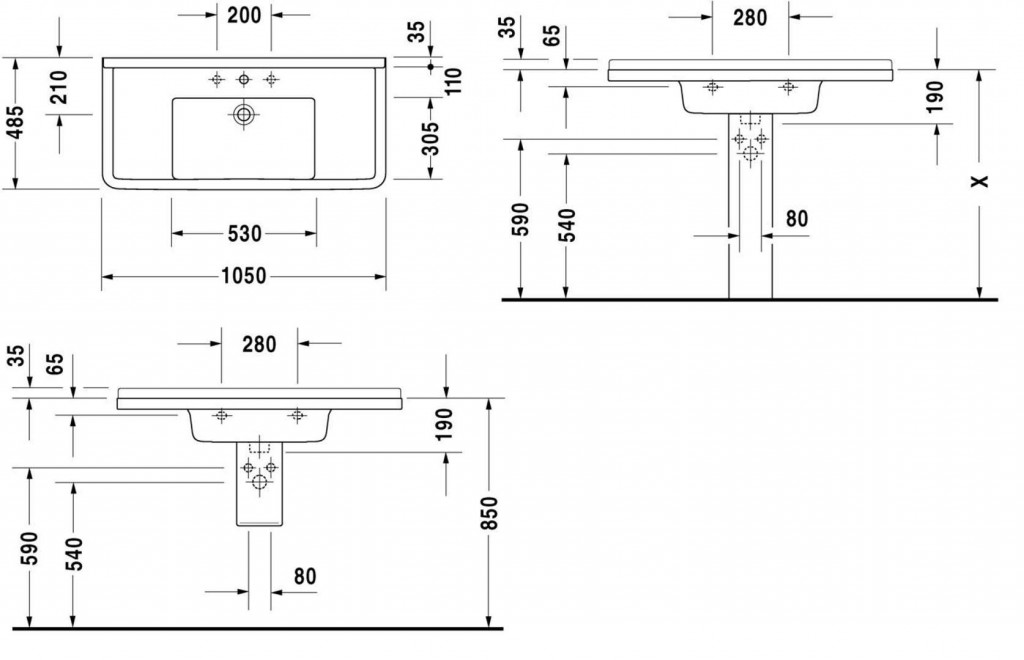 - s 1 otvorom pre umývadlovú batériu