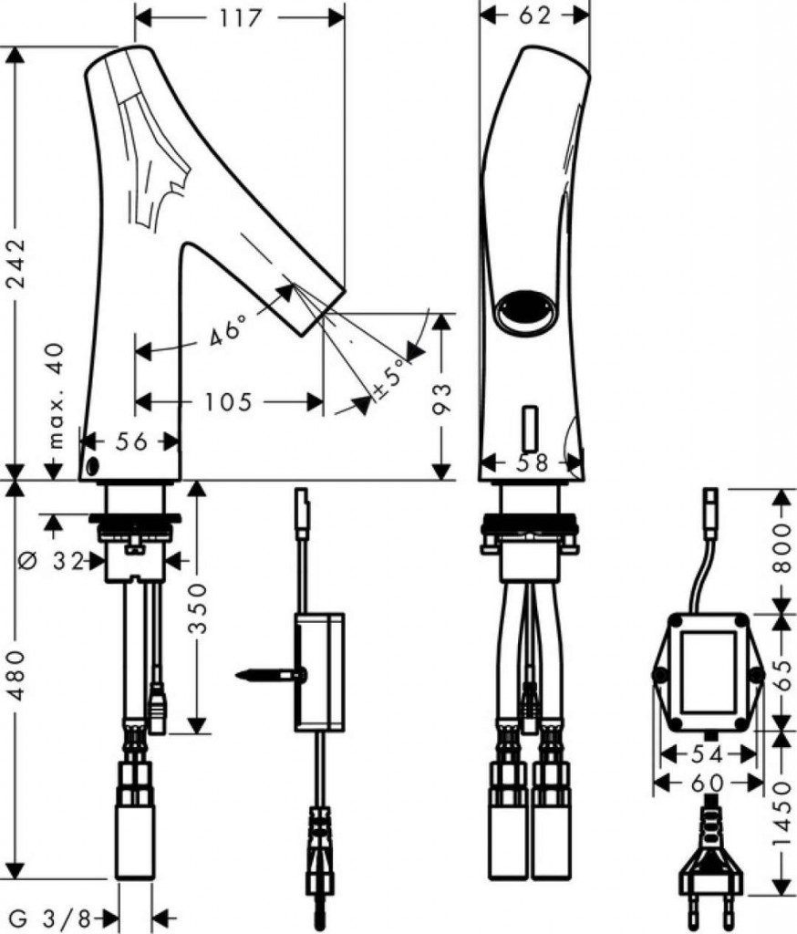 Elektronická umývadlová batéria bez regulácie teploty, s pripojením na sieť 230 V