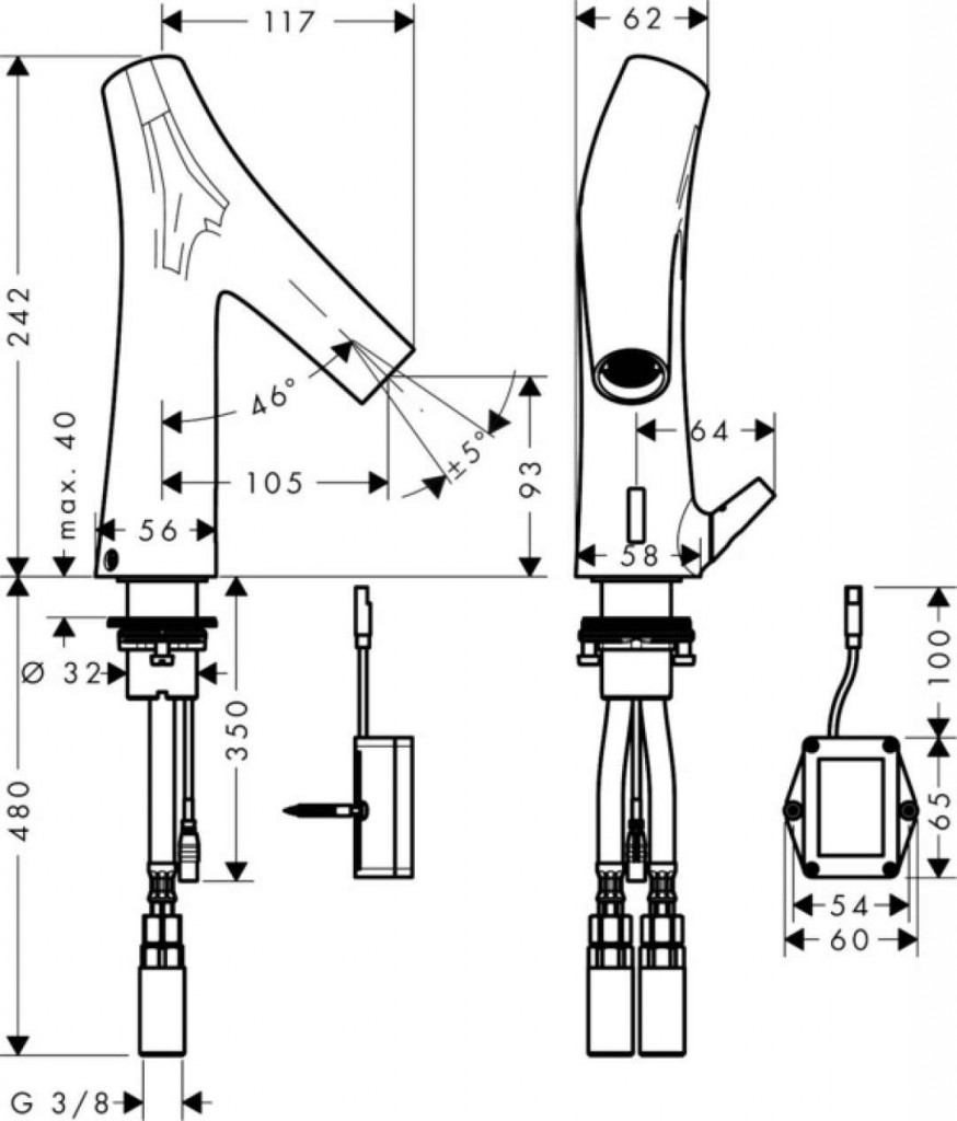 Elektronická umývadlová batéria s reguláciou teploty, batériový prevádzka
