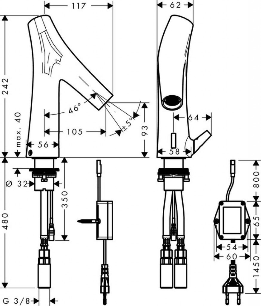 Elektronická umývadlová batéria s reguláciou teploty, s pripojením na sieť 230 V