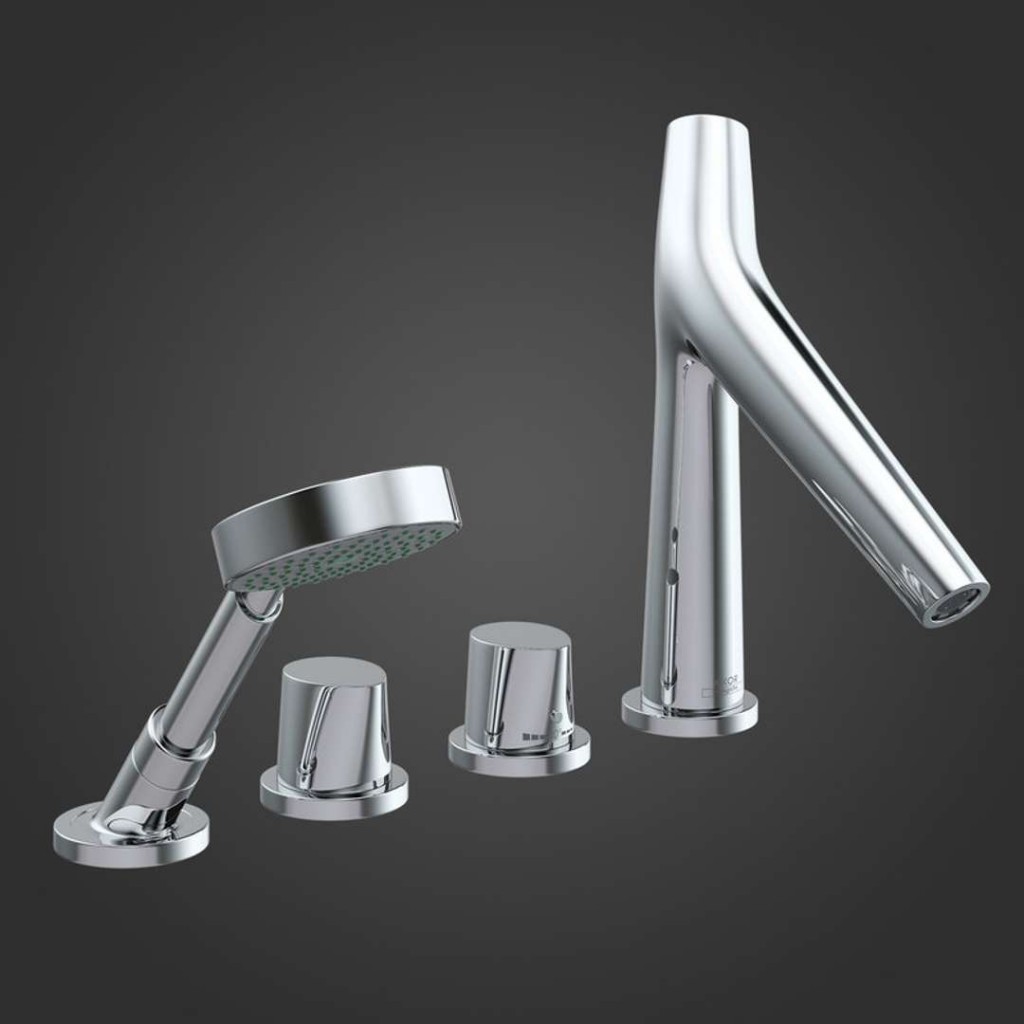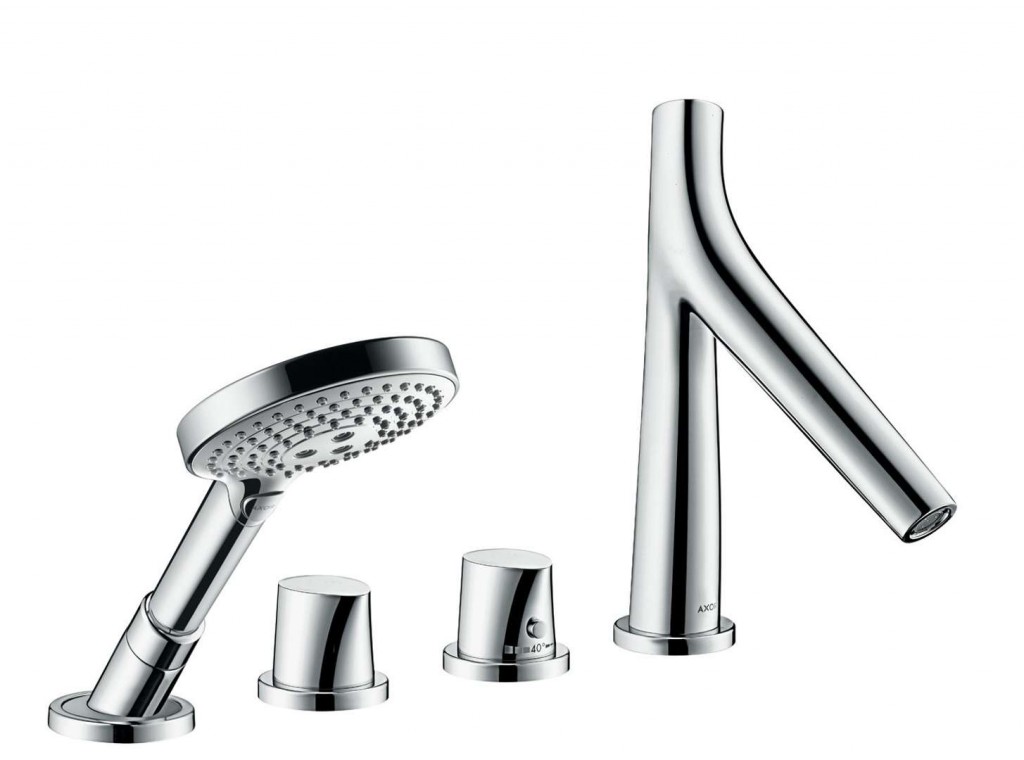 - obsahuje rukoväte, termostatickú kartušu, uzatvárací ventil, vaňový výtok s prepínačom a ručnú sprchu Axor sa 3 prúdy # 26050xxx