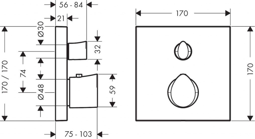 Termostatická batéria pod omietku s uzatváracím a prepínacím ventilom bez telesa
