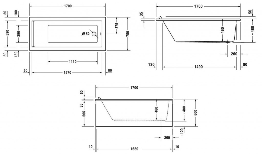 Odtoková súprava ani podpora vane nie sú súčasťou balenia, nutné dokúpiť zvlášť.