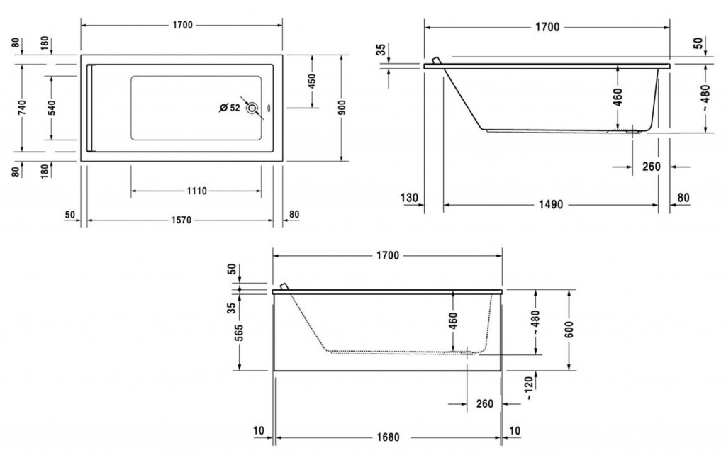 Odtoková súprava ani podpora vane nie sú súčasťou balenia, nutné dokúpiť zvlášť.