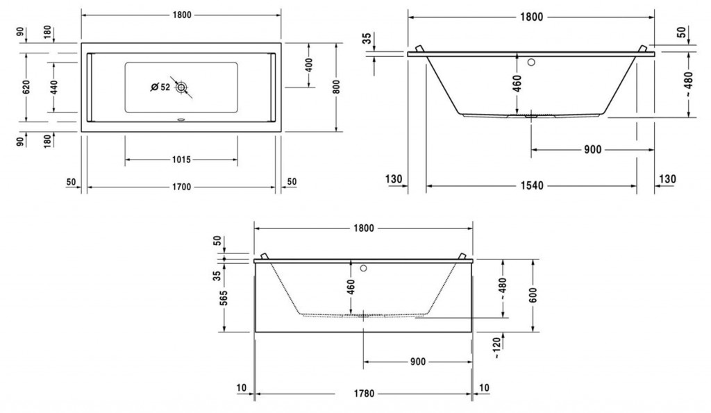 Odtoková súprava ani podpora vane nie sú súčasťou balenia, nutné dokúpiť zvlášť.