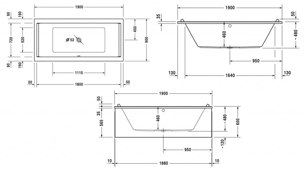 Odtoková súprava ani podpora vane nie sú súčasťou balenia, nutné dokúpiť zvlášť.