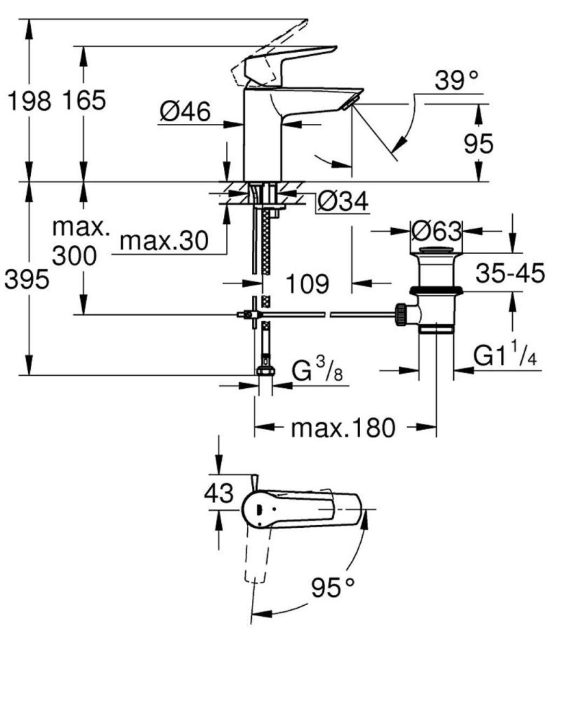 Páková umývadlová batéria s výpusťou a studeným štartom